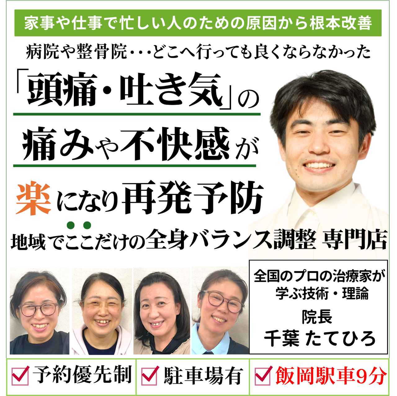 皆様が痛みや不調に悩まされず、日々を安心して過ごすことができるよう、全力でサポートしていくことをお約束します。
